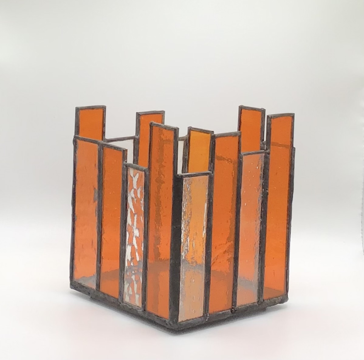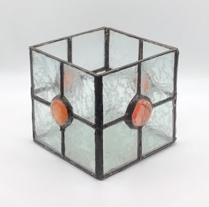 Orange Dots – Stained Glass – 4″ h x 4″ w x 4″ d – 2020
