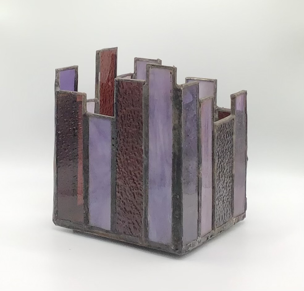 Purple Skyline – Stained Glass – 18″ h x 42″ w – 2021 (Commissioned)