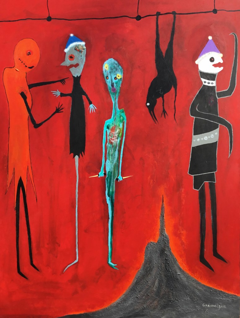 Bungle Balls at the Lithium Pools #2 – Acrylic on Board – 48″ h x 37″ w – 2018 – #9