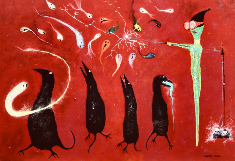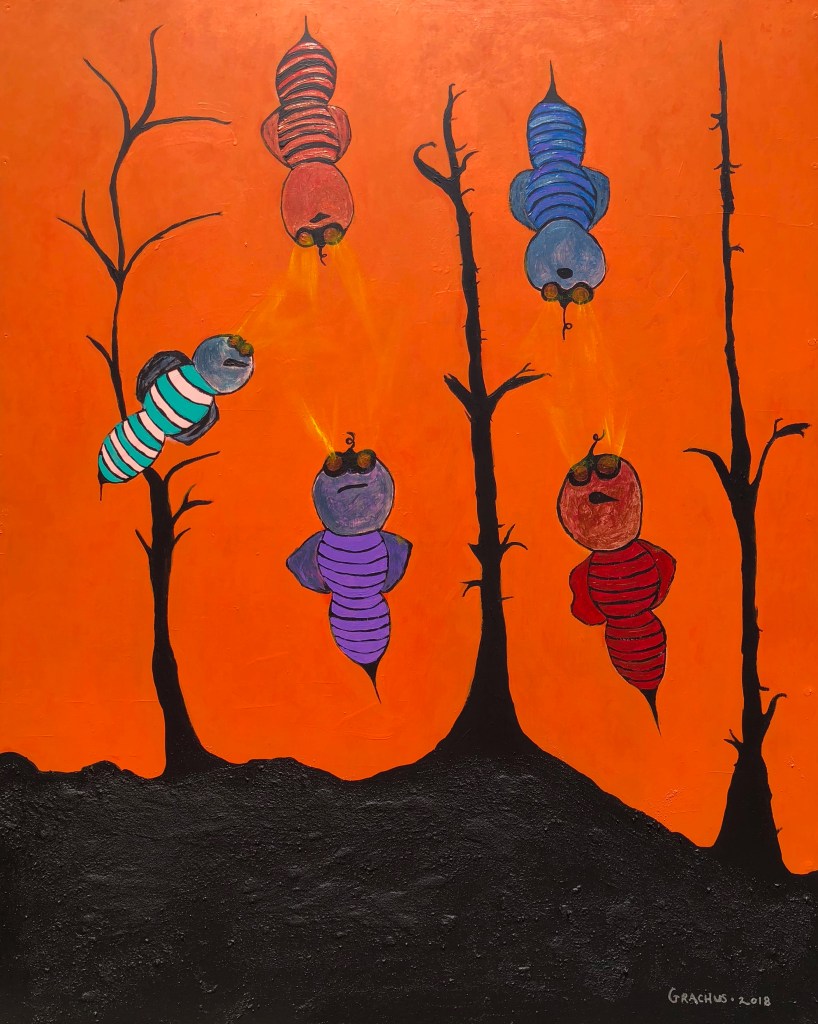 Attack of the Flash Ghosts – Acrylic on Board – 42″ h x 58 1/2″ w – 2018 – #27