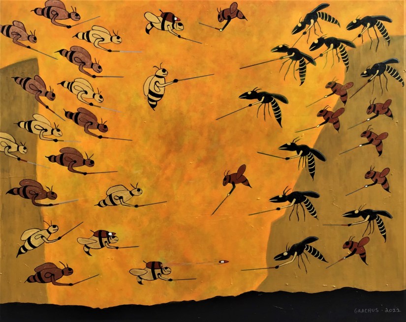 Swarm to Protect – Acrylic on Board – 48″ h x 60″ w – 2022 – #14