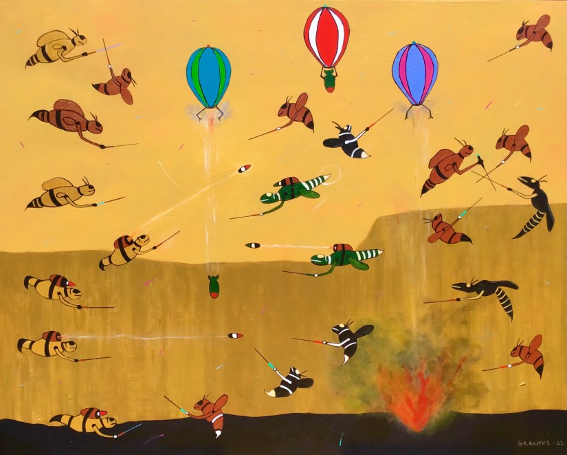 Flight Fight – Acrylic on Board – 48″ h x 60″ w – 2022 – #15