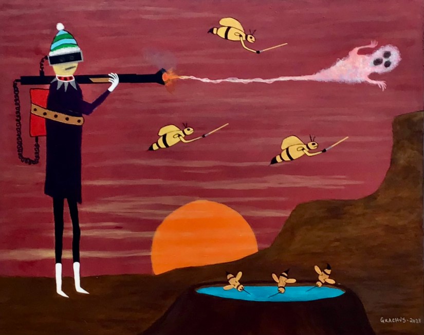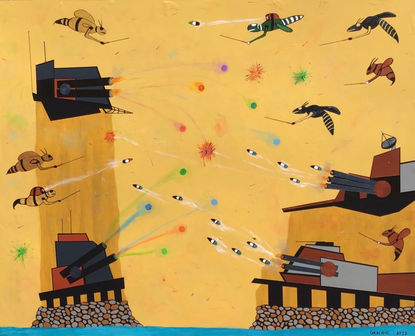 Launching of the Flash Ghosts – Acrylic on Board – 41 1/2″ h x 58 3/4″ w – 2018 – #26