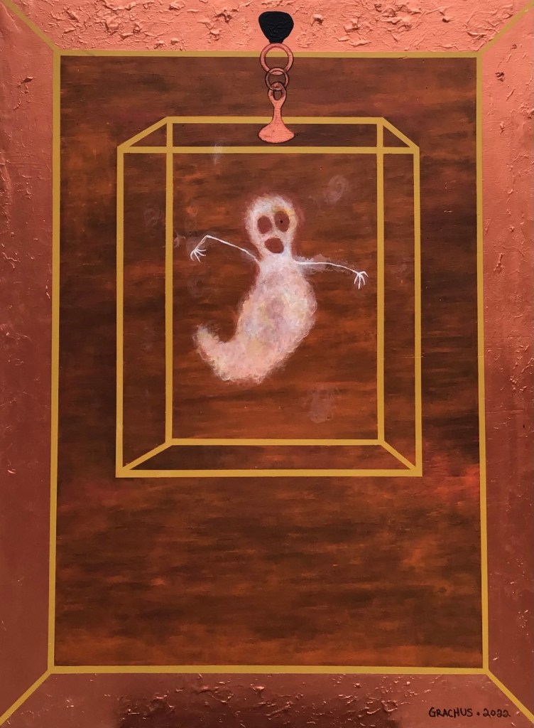 The Ghost in the Glass Box pt.1 – Acrylic on Board – 48″ h x 36″ w – 2021 – #30