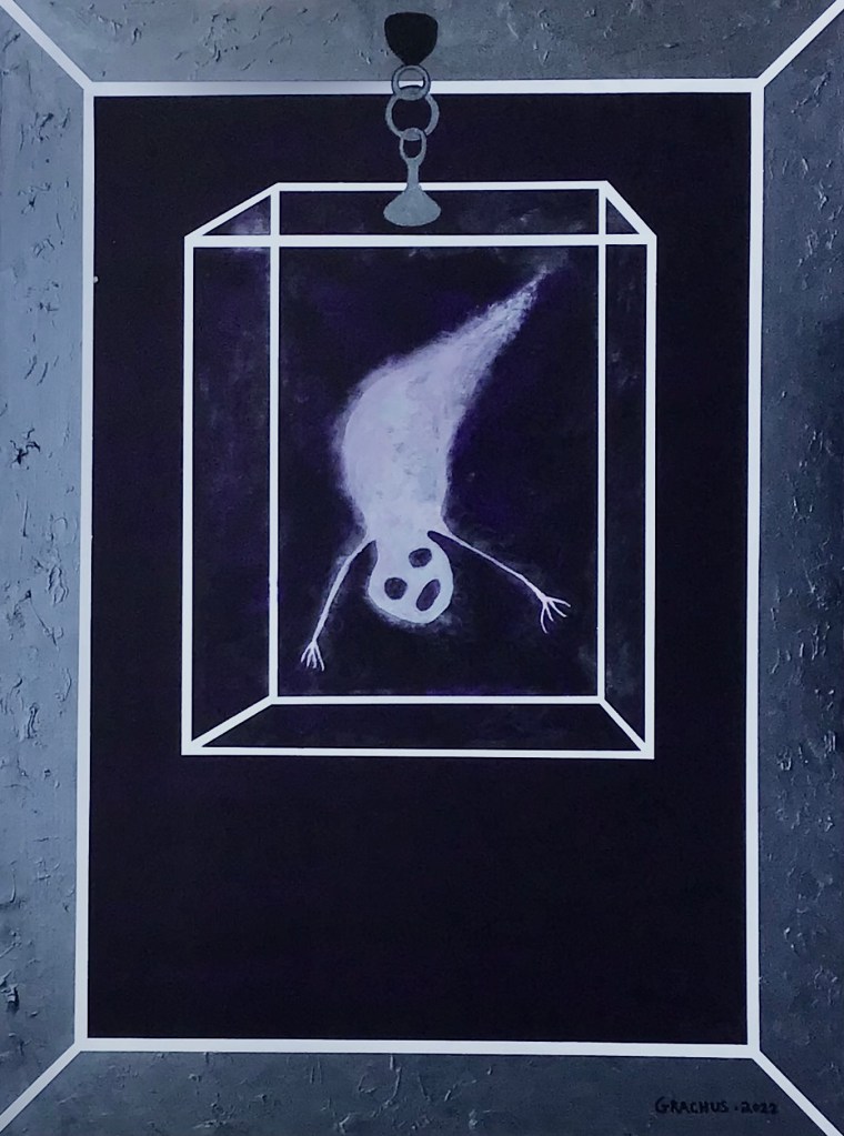 The Ghost in the Glass Box pt.5 – Acrylic on Board – 48″ h x 36″ w – 2022 – #34