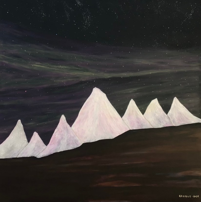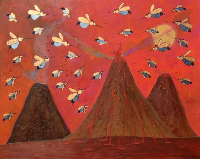 Three Volcanoes – Acrylic on Board – 48″ h x 60″ w – 2024 – #36