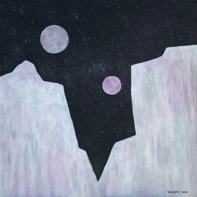 Zebulon is a vast and cold world through an age and time. Lurking above the pink ice cliffs are two moons. The moon on the left is Yonda. The moon on the right is Chaldston. It is unclear if there is life on the two satellites.